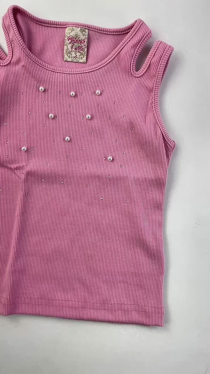 Blusa Feminina Brincar e Arte Ribana Canelada Com Perolas
