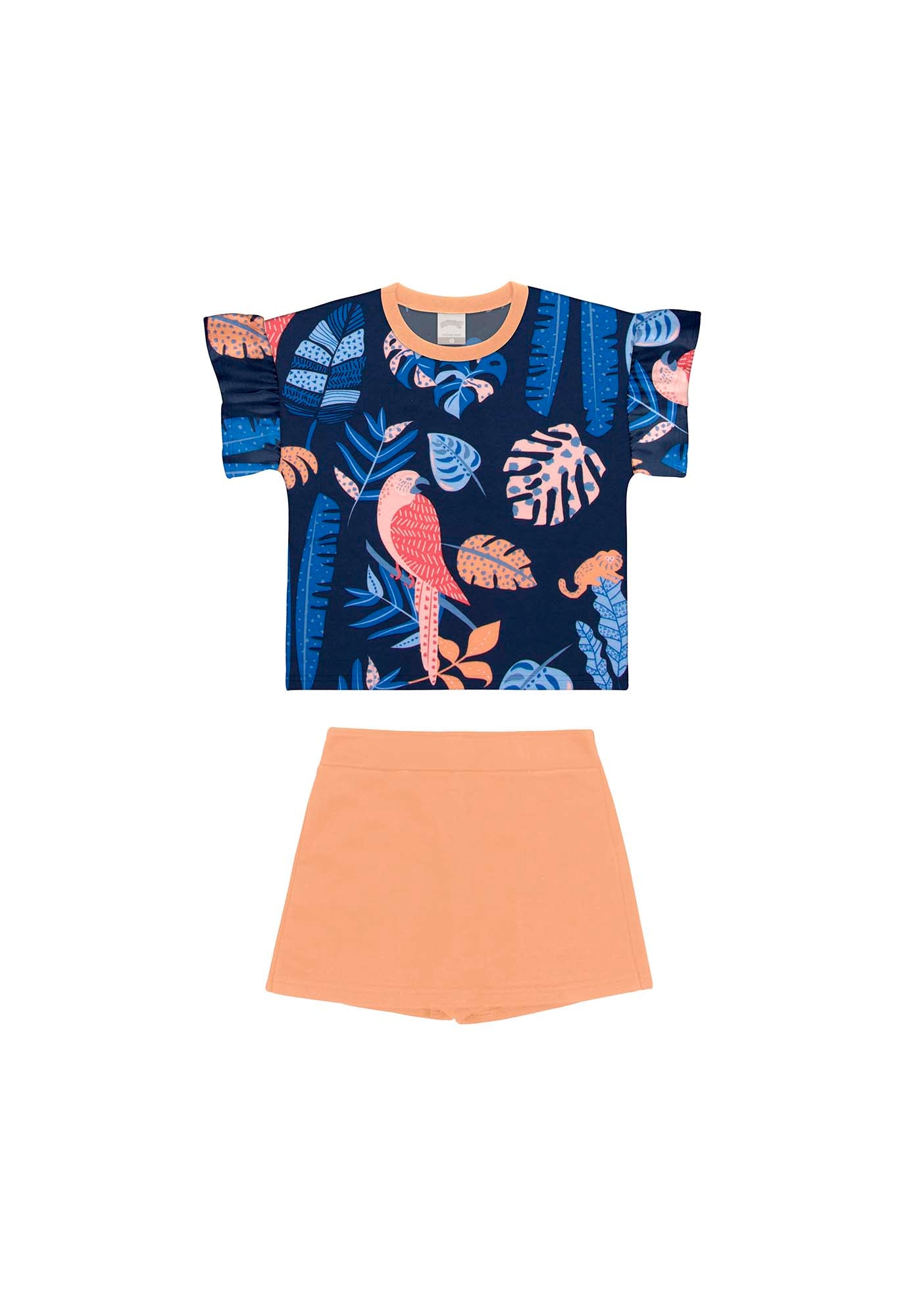 Shortinho com Detalhe em Saia: O shortinho complementa a blusa com um detalhe de saia, criando um look divertido e feminino. O design combina a praticidade do shortinho com a elegância e o estilo de uma saia, oferecendo um ajuste confortável e versátil.
