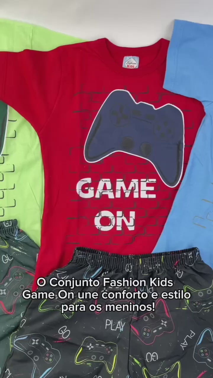 O Conjunto Infantil Masculino Fashion Kids Game On é confeccionado em malha macia e leve, proporcionando conforto e liberdade de movimentos para o dia a dia. A camiseta traz estampa gamer moderna e divertida, enquanto o short com cós elástico oferece praticidade e ótimo caimento. Ideal para meninos que amam brincar e se vestir com estilo.