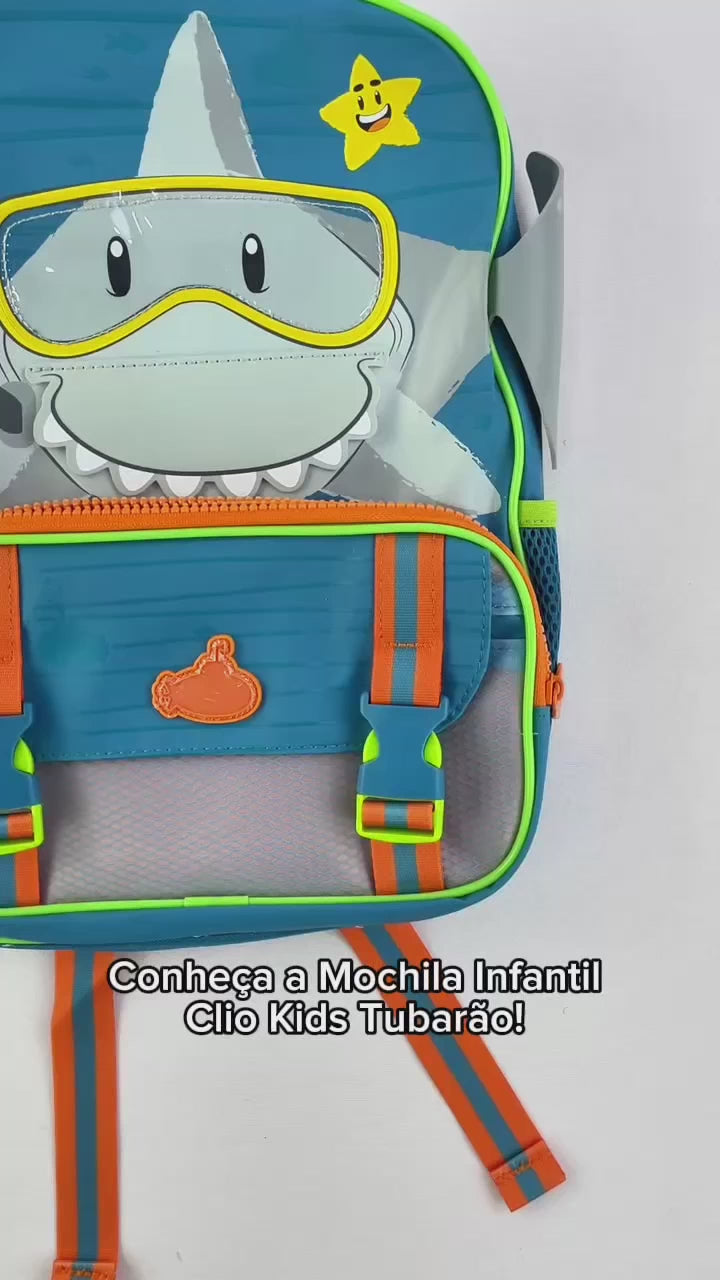 Mochila Infantil Clio Kids Tubarão Interativa Escolar