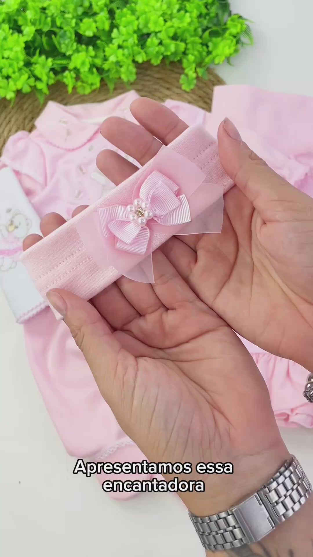 Conjunto completo 4 peças: inclui Manta, Macacão, Pano de boca e uma Tiara de Cabelo