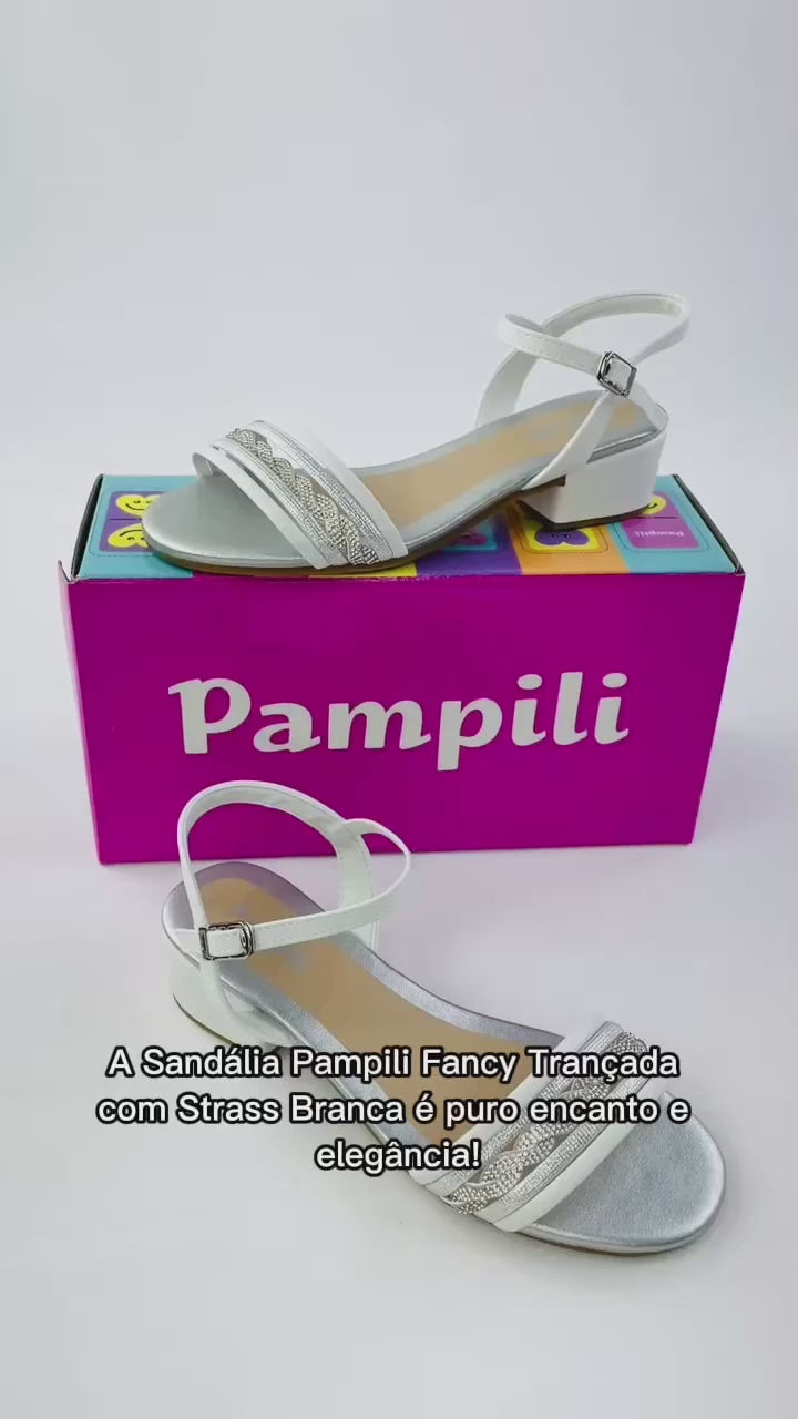 Sandália Infantil Pampili Fancy Trançada Saltinho Strass Brilho