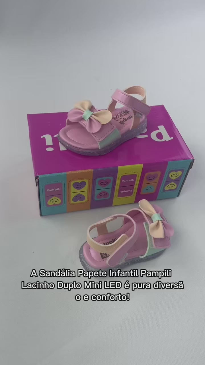 A Sandália Papete Infantil Pampili Lacinho Duplo Mini LED é a combinação perfeita de delicadeza, conforto e diversão!