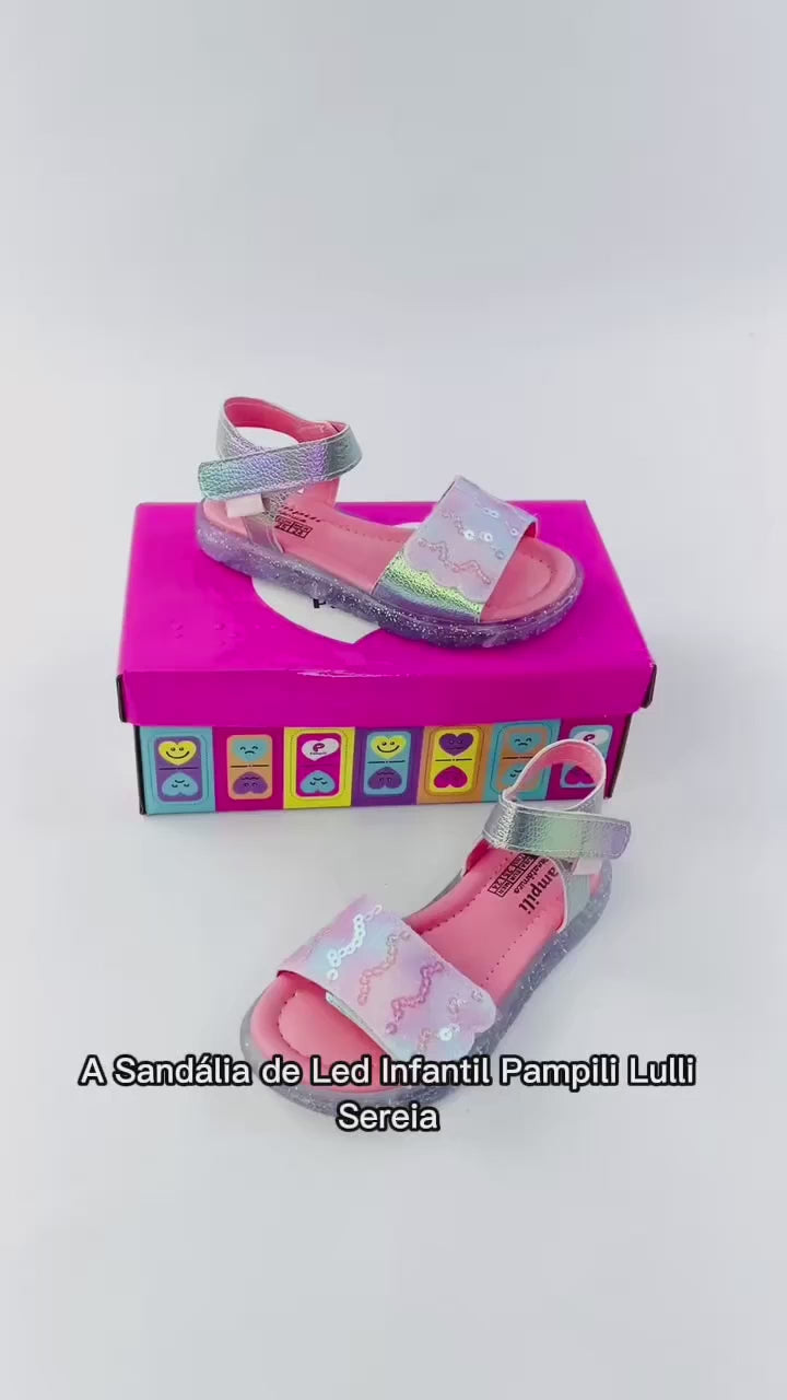 A Sandália de Led Infantil Pampili Lulli Sereia Holográfica é um encanto que brilha a cada passo!