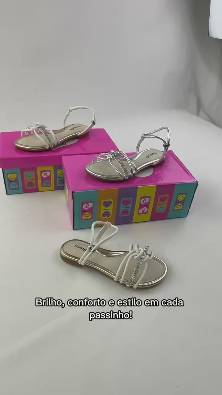 A Sandália Infantil Pampili Iris Tiras com Nó Strass é a escolha ideal para as meninas que amam conforto com um toque de brilho!